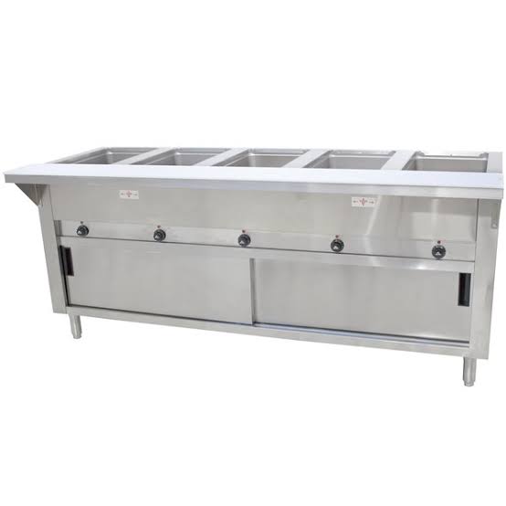 The Garinex Bain Marie with Sliding Doors (5 Wells) is designed for commercial kitchens, buffets, and canteens that require consistent food warming and organized service. Built from durable stainless steel, it features five deep wells to hold a variety of dishes at safe serving temperatures using either wet or dry heat.